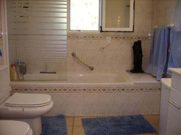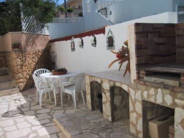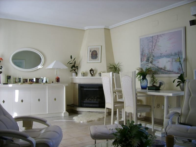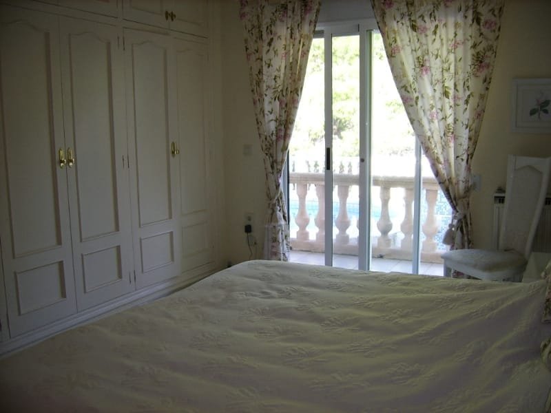 Een villa. Geschakeld d.m.v. de garage, in middenlandse-zee stijl met drie verdiepingen. De villa is gesitueerd in La Nucia (ALICANTE) in een rustige omgeving zonder verkeer. Het is gebouwd in het jaar 1999.Het heeft panoramisch zicht. Het ligt buiten de bebouwde kom. De staat van het object is uitstekend.De grond is geclassificeerd als: bouwgrond in een woonwijk. Het terrein is omheind door een hekwerk. Het terrein is hellend. De hoofdpoort is met een afstandsbediening te openen. De villa heeft vier slaapkamers, waarvan één enkel, drie dubbele, vier met inbouwkasten en twee op de begane grond. De villa heeft drie sanitaire voorzieningen, van welke twee met ligbad en één met toilet. Er zijn twee huiskamers. De hoofd-huiskamer heeft 35 m², een open haard, air-conditioning-heet en koud en een vloer van rustieke tegels. Er zijn twee keukens, één van deze zijn open naar de huiskamer en één van deze zijn gesloten keukens. De keuken heeft een oppervlakte van 9 m², kookplaten op gas en een vloer van rustieke tegels. In de keuken bevindt zich een wasmachine, een afwasmachine, een magnetron, een oven, een koelkast, een diepvriezer, er is een bij-keuken en de keukenbladen zijn gemaakt van graniet. Het is uitgerust met: air conditioning en rolluiken. De ramen zijn van dubbel glas en de raamkozijnen zijn gemaakt van aluminium. De villa heeft één gastenverblijfplaats. Er is één slaapkamer en één badkamer voor gasten. De gasten hebben tot hun beschikking: een gesloten keuken en een eigen ingang. Het heeft één garage, met een totale oppervlakte van 30 m². Er is één overdekte plaats. Er is een zwembad met een afmeting van 4 x 8 m en het heeft één lichtpunt. Er zijn de volgende gemeenschappelijke faciliteiten: busstop dichtbij en supermarkt dichtbij.
