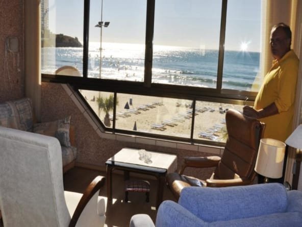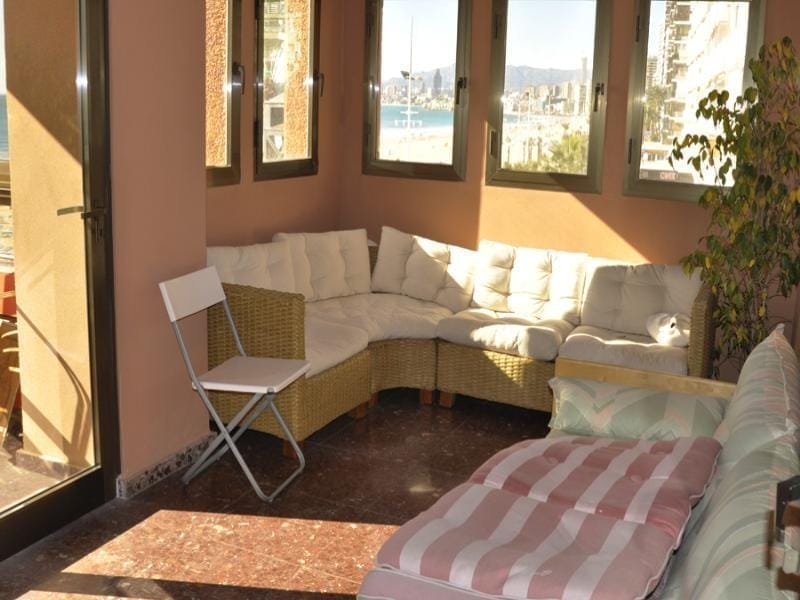 Het appartement is gesitueerd in Benidorm (ALICANTE). Het grondstuk heeft een oppervlakte van 83 m². Het ligt binnen de bebouwde kom.Het heeft zicht op de zee en vrij zicht. Het terrein is vlak. Het appartement heeft twee slaapkamers, Er is één huiskamer. De huiskamer heeft meubels. In de keuken bevindt zich een wasmachine, een droger, een afwasmachine, een magnetron, een oven, een koelkast, een diepvriezer en er is een bij-keuken. Het is uitgerust met: air conditioning. Het heeft één garage.Het is aan de eerste lijn van het strand.