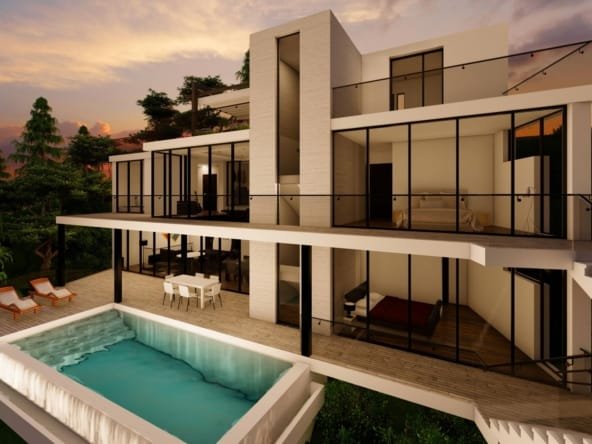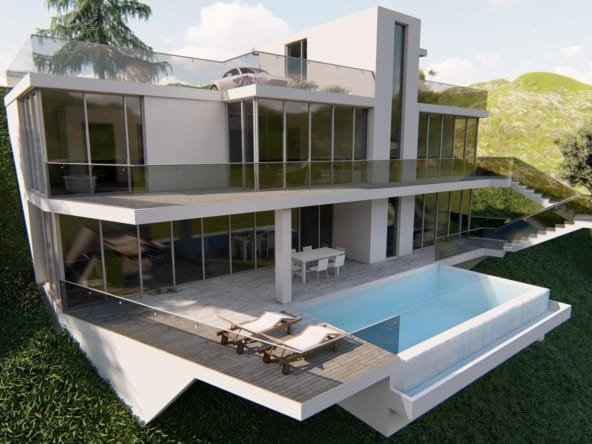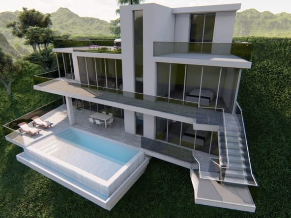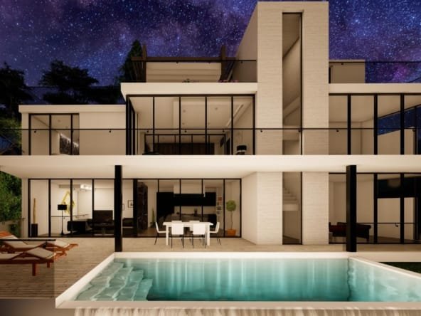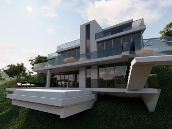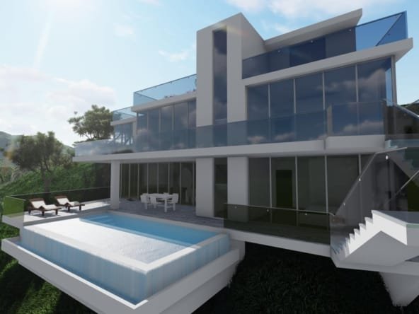Een zeer moderne villa van 3 etages is voorzien van een moderne open keuken, ruime woonkamer, 4 ruime slaapkamers die elk uitzicht hebben op zee en 3 badkamers.Er zijn diverse terrassen op verschillende niveaus en een eigen infinity zwembad.