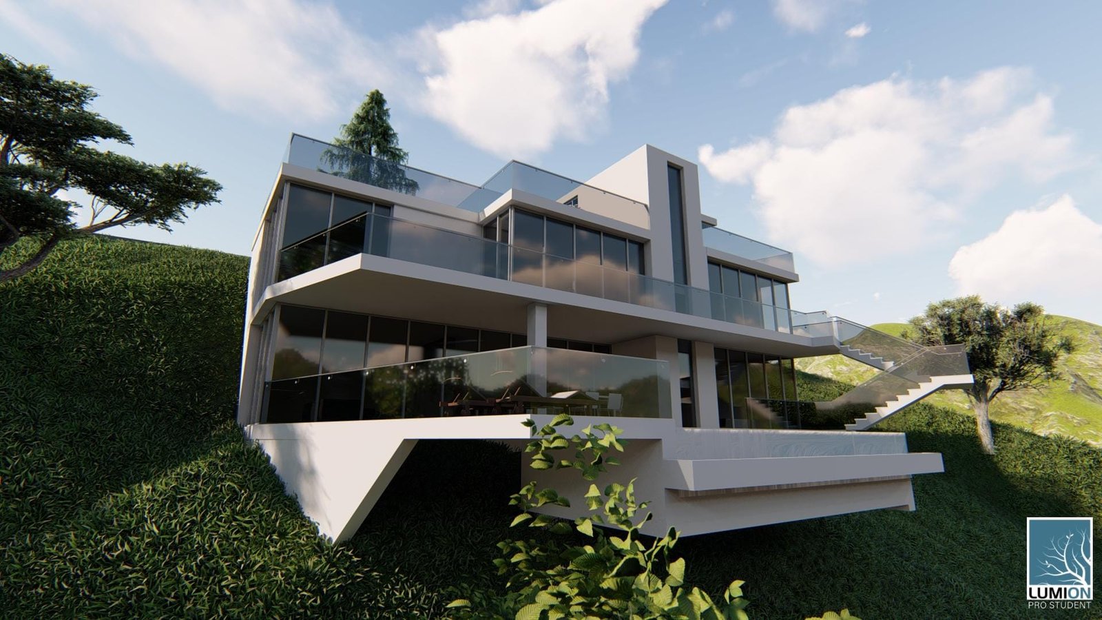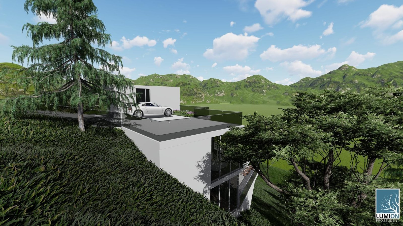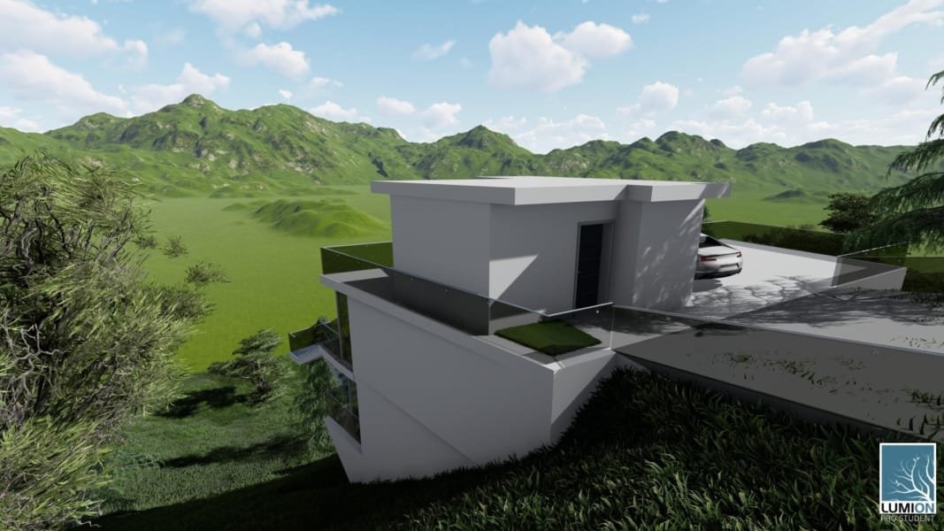 Bovenop is er een ruime parkeerplaats aanwezig met carport en een lift om het huis te betreden.