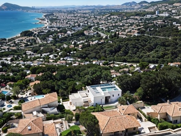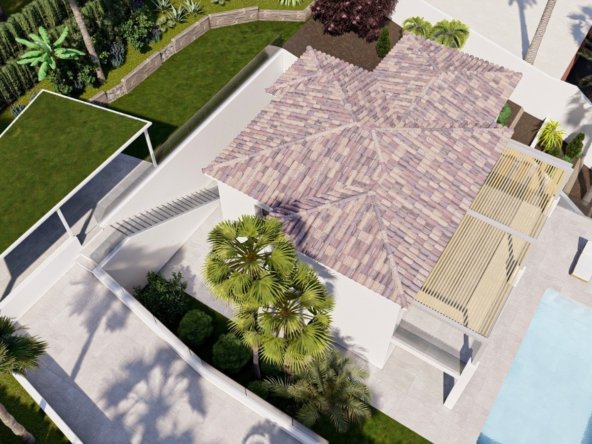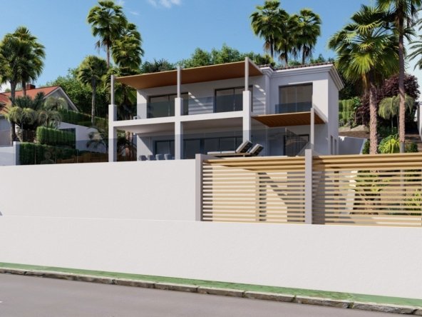 De woning heeft een woonoppervlakte van 190,90 m² en is gelegen in een privé urbanisatie met zuidoriëntatie en is verdeeld over 2 verdiepingen.De begane grond heeft een volledig uitgeruste semi-gesloten keuken, gastentoilet, een ruime en lichte woon-eetkamer met toegang tot het gedeeltelijk overdekte terras en met een pergola aan de linkerkant. Via een binnentrap komen we op de eerste verdieping, waar we een slaapkamer hebben aan de linkerkant met een klein balkon, dan hebben we een en-suite slaapkamer met badkamer, nog een slaapkamer en een badkamer. Beide slaapkamers komen uit op een overdekt terras met pergola, met prachtig uitzicht op zee en de regio.De villa is uitgerust met airconditioning (warm-koud) in woon-eetkamers en slaapkamers, vloerverwarming door middel van aerothermische, automatisch irrigatiesysteem voor de tuin, elektrische rolluiken voor slaapkamers, gepantserde toegangsdeur en dubbele beglazing. Bovendien kunnen tegen meerprijs de volgende opties worden geïnstalleerd: zonnepanelen, warmtepomp voor het zwembad en een alarmsysteem met videobewaking.Het huis ligt op 7,5 km van de stad, 7 km van het strand, 4 km van de snelweg en 74 km van het vliegveld van Alicante.